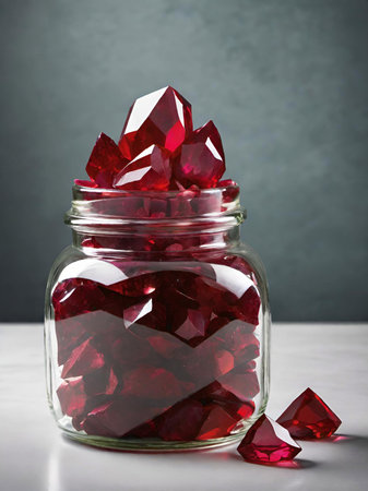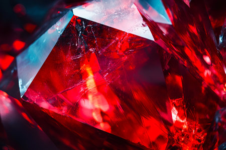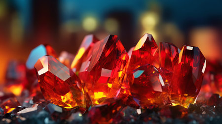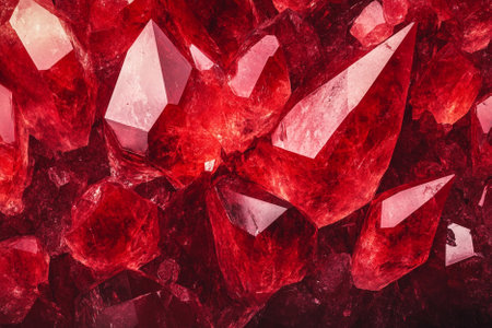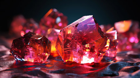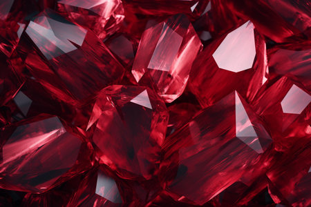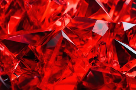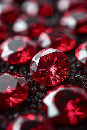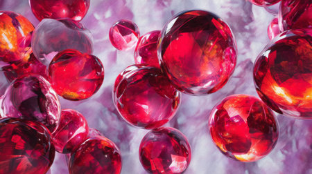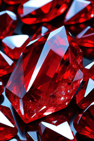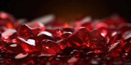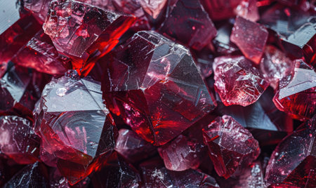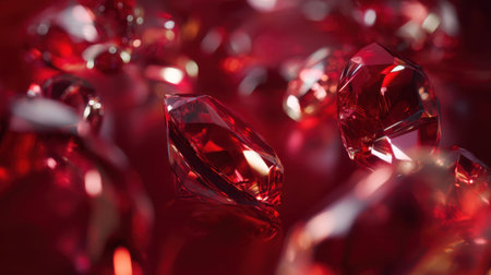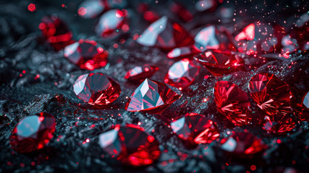 This close-up image showcases mesmerizing red gems with vibrant colors and intricate textures. The stunning sparkle and reflections create a luxurious and artistic atmosphere.