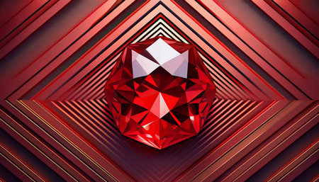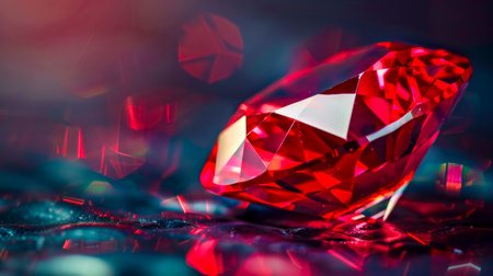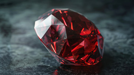 A stunning red gemstone displaying brilliant cut facets, reflecting light beautifully on a dark surface. Ideal for luxury themes in design and art.