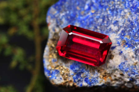Ruby on a black background. Jewelry background. Macro shooting.