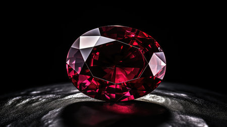 AI Generated. Charming ruby glows vividly on a textured surface during soft daylight