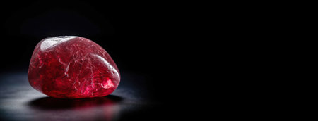 Red beryl is a rare precious natural geological stone on a black background in low key. Fashionable jewelry elegant decoration. AI generated. Header banner mockup with space.