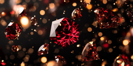 Close up view of dazzling red rubies with bokeh effect showcasing their vibrancy and brilliance