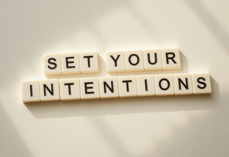 A close-up view of letter tiles arranged to spell Set Your Intentions, symbolizing motivation and personal growth. Ideal for wellness and coaching themes.
