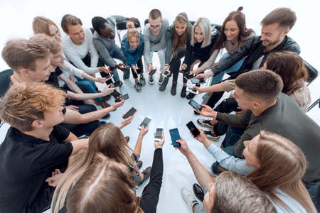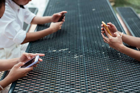 Generative AI : Close up of group of young people with smartphones in the hands Young people addiction to new technology trends