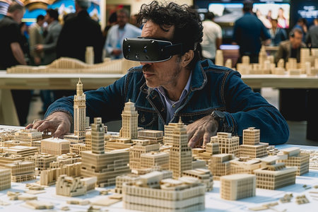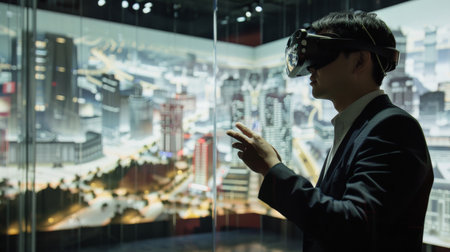 A Chinese architect uses virtual reality to visualize and manipulate future city projects in a high-tech urban development center.