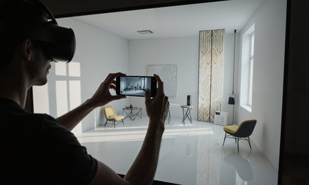 Augmented Reality Interior Design Studio. A room with plain white walls that serves as a live canvas for an interior