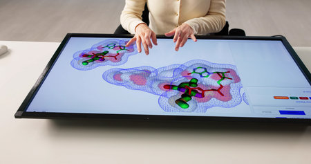 Young Scientist Analyzes Drug Structure On Computer Using Touchscreen Technology.