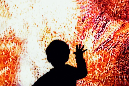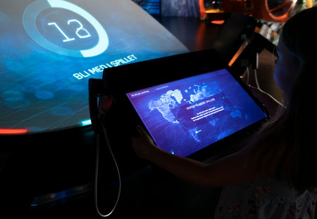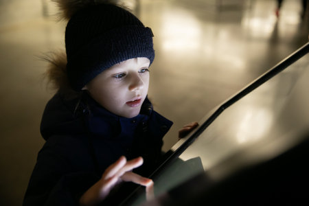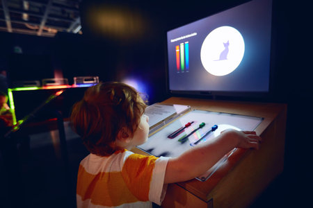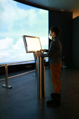 WARSAW, POLAND - June 20, 2019: Curious kid exploring the characteristics of light in the Copernicus Science Centre in Warsaw, Poland