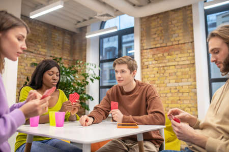Millennials active lifestyle and leisure. Socializing and teambuilding. Young people having fun together after successful work.