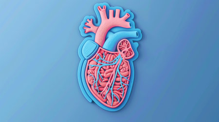 A highly detailed human heart model highlights the complex structure of blood vessels and anatomy, perfect for educational purposes and medical visualization.