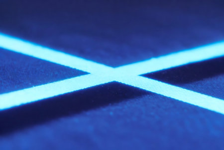 A focused, square, macro photograph highlighting the central juncture of a cross traced in fine grey
