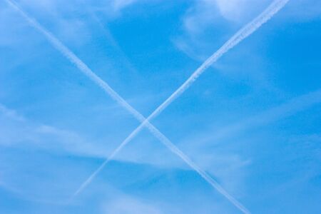 The cigarettes are laid out in the form of crosses on a blue background. Top view, horizontal, with space to copy. The concept of the dangers of smoking.