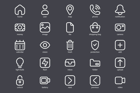 App Control System User Interface (UI) Vector Icon Set. High Quality Minimal Lined Icons.