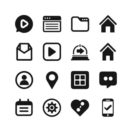 Collection of black and white vector website and app icons