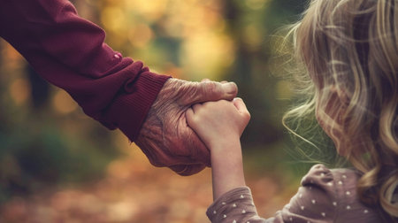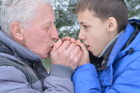 Senior man with his granddaughter. Child and grandpa outdoors. Benefits of getting older.