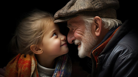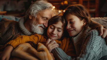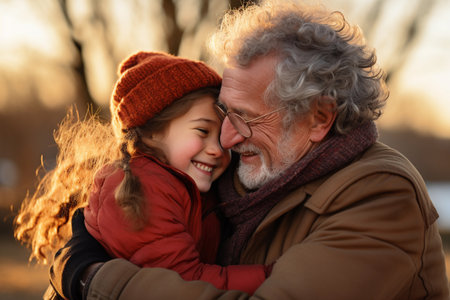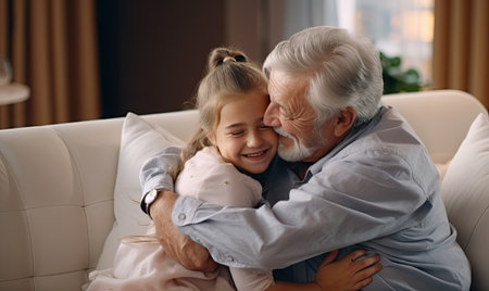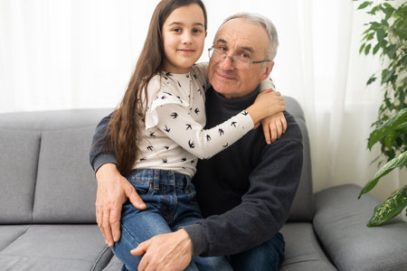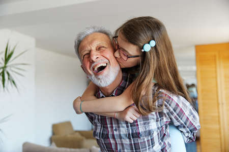 Portrait of Grandfather and granddaughter having fun hugging and bonding together at home