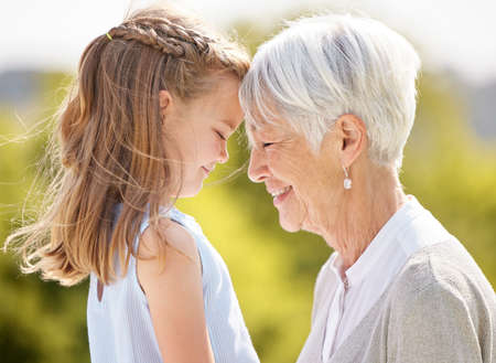 Shot of an elderly woman spending time outdoors with her granddaughter.