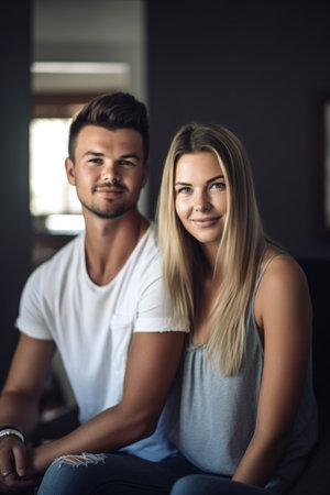 shot of a young man and his wife sitting together at home, created with generative ai