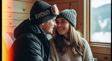 Generative AI : happy couple in love on a winter morning in bed