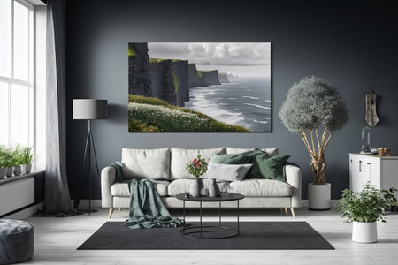 Modern living room with Cliffs of Moher canvas