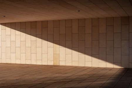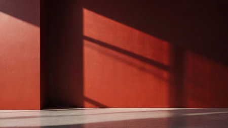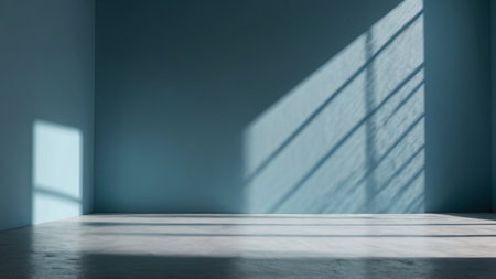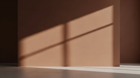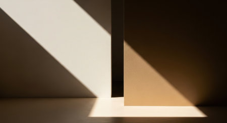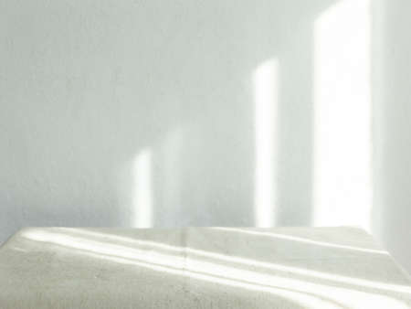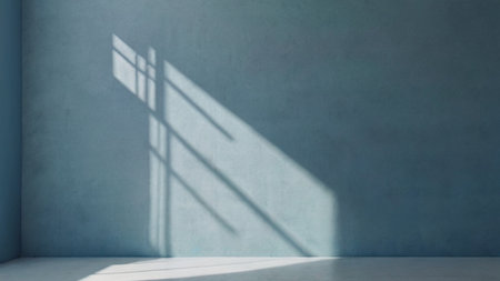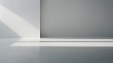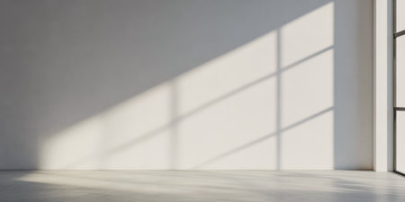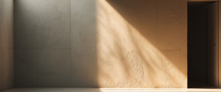 Architectural background featuring a clean corner with dramatic soft sunlight and shadows, ideal for product mockups.