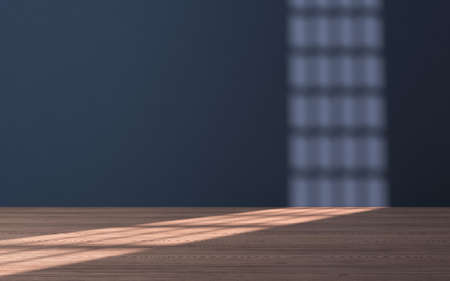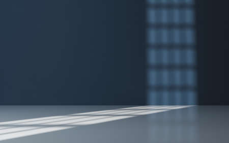 Abstract blue wall with sunlight and window shadows and mock up place. gallery concept. 3D Rendering