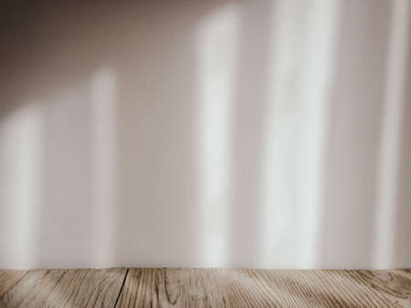 Abstract light beige wall for product presentation with complex light and shadow from window.
