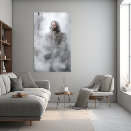 jesus in the fog canvas print - living room