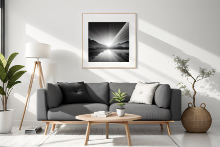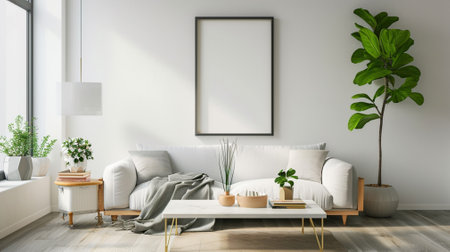 Stylish living room interior with mock up poster nordic and contemporary