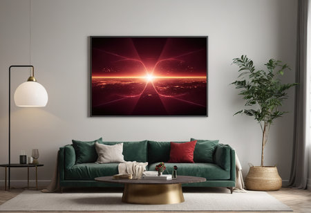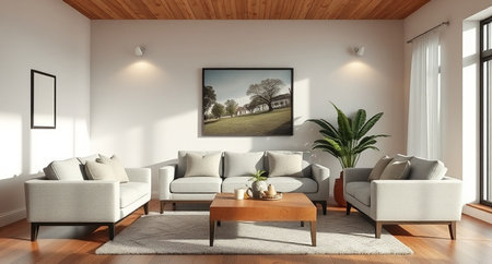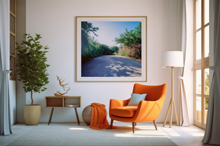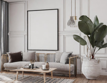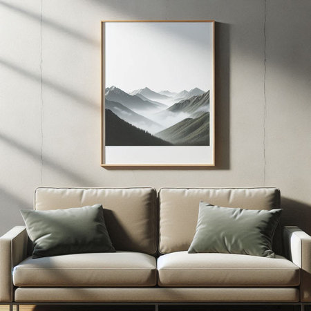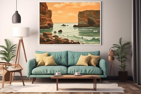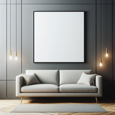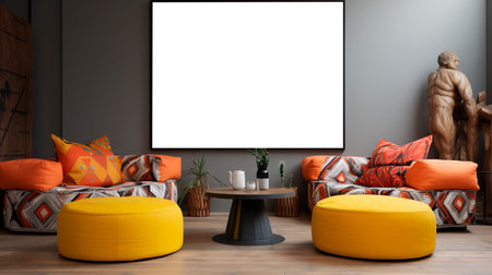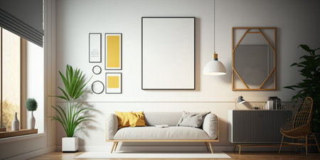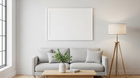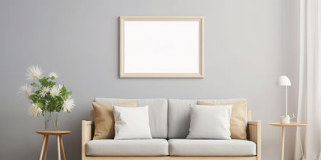 big blank frame for mockup with sofa professional advertising photography AI Generated