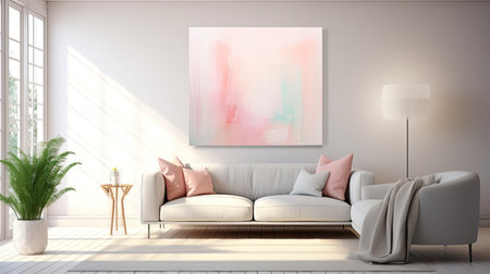 A vibrant abstract piece in a polished black frame sits on the wall, bringing a dash of artistic sophistication to the room. Generative AI