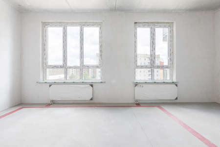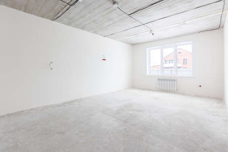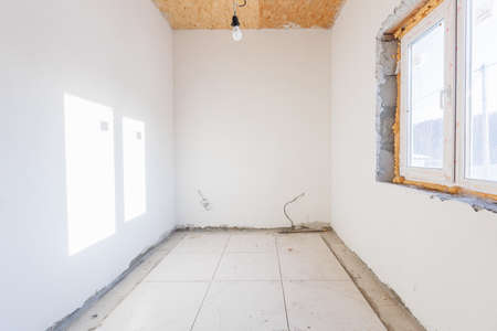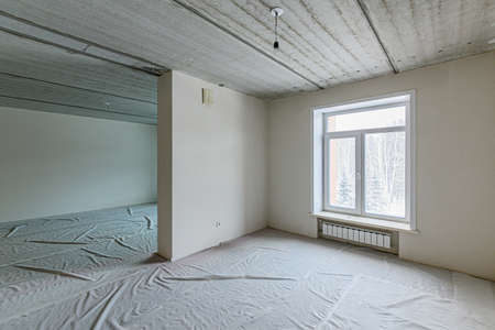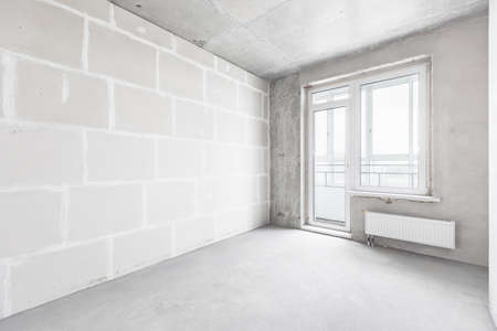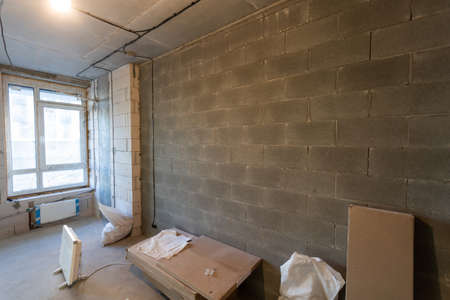 Russia, Moscow- January 27, 2020: interior room apartment rough repair for self-finishing. interior decoration, bare walls of the room, stage of construction