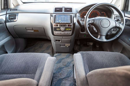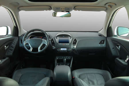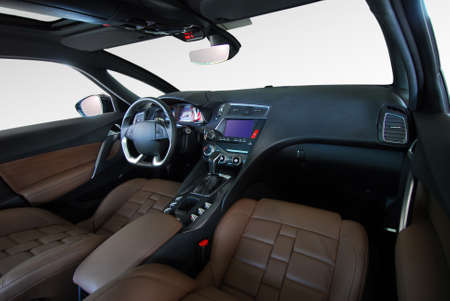 Interior view of car with leather salon.