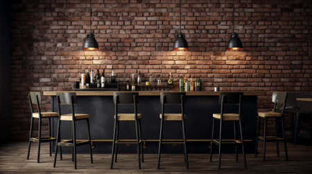 Generative AI Interior of a empty hotel restaurant with brick wall