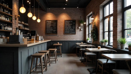 Interior Industrial Chic Cafe with Exposed Brick Walls