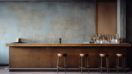 the murphy bar, elegantly situated in a minimalist brutalist setting, exudes sophistication in this editorial-style photograph, captured with a mamiya rz67 camera, zoomed in to emphasize the sleek design, showcasing the beauty of modern interior design, brutalist architecture, and scandinavian-inspired decor. ai generated