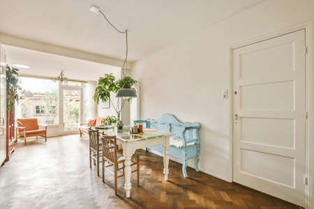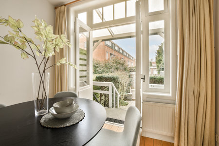 Bright dining room with decorative table and chairs
