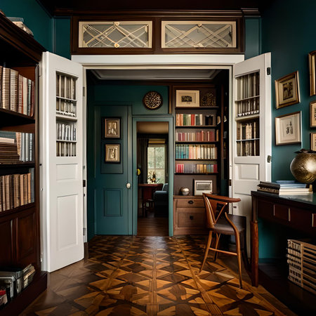 The interior of the room is in the Art Nouveau style. A room lit by light from a window. AI generated.