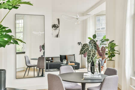 Interior design of bright and beautiful dining zone in house