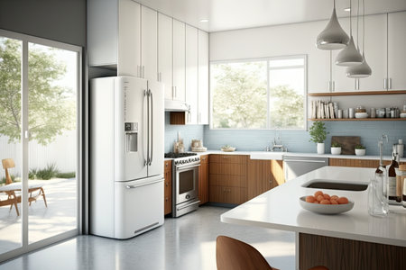 mid-century modern kitchen, with sleek, minimalistic design and all the latest appliances, created with generative ai