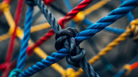 Network of Interconnected Colorful Ropes Symbolizing Unity, Teamwork, and Collaboration