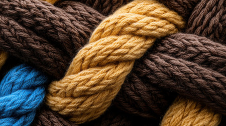 diverse ropes connected together as a symbol for cooperation and working collaboration. ai generated