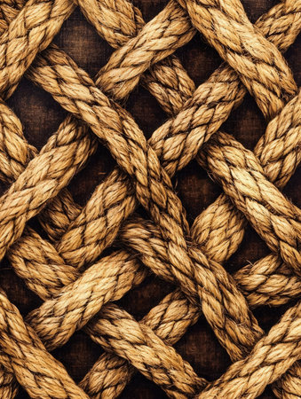 An intricately woven fabric, resembling a knotted rope, captures the essence of natural fibers in a close-up snapshot