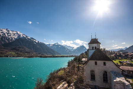 The Ringgenberg castle lies by lake of Brienz in the Swiss alps, Canton Bern, Switzerland