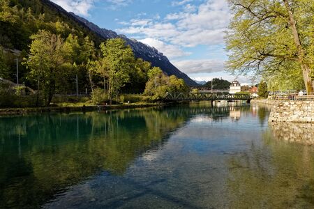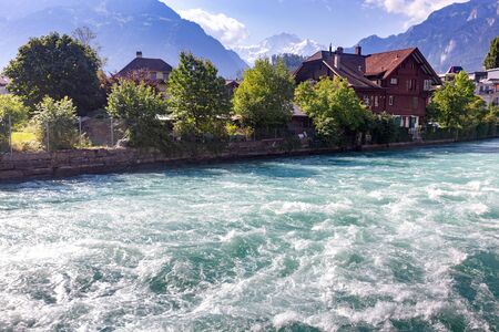 Interlaken. Mountain river Aare passing through the city.