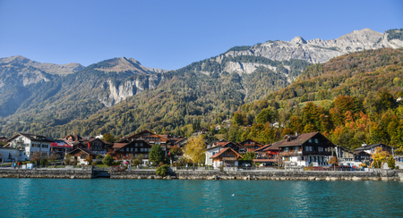 The traditional Swiss village of Iseltwald on the famous lake Brienz. Switzerland.