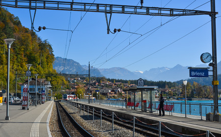 Brienz, Switzerland - Oct 21, 2018. Railway station in Brienz, Switzerland. The first Swiss railway line opened from Zurich to Baden in 1847.