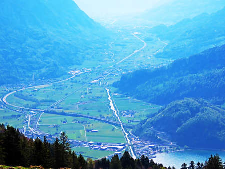 Spacious subalpine valley Seeztal along the Seez River between Lake Walensee and the Rheintal Valley, Walenstadtberg - Canton of St. Gallen, Switzerland (Kanton St. Gallen, Schweiz)