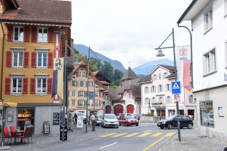 Glarus, Switzerland - 3 August 2017: the town of Glarus on the Swiss alps