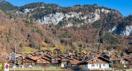 Scenic mountain village surrounded by the mountain, Canton Schwyz, Switzerland, Europe.